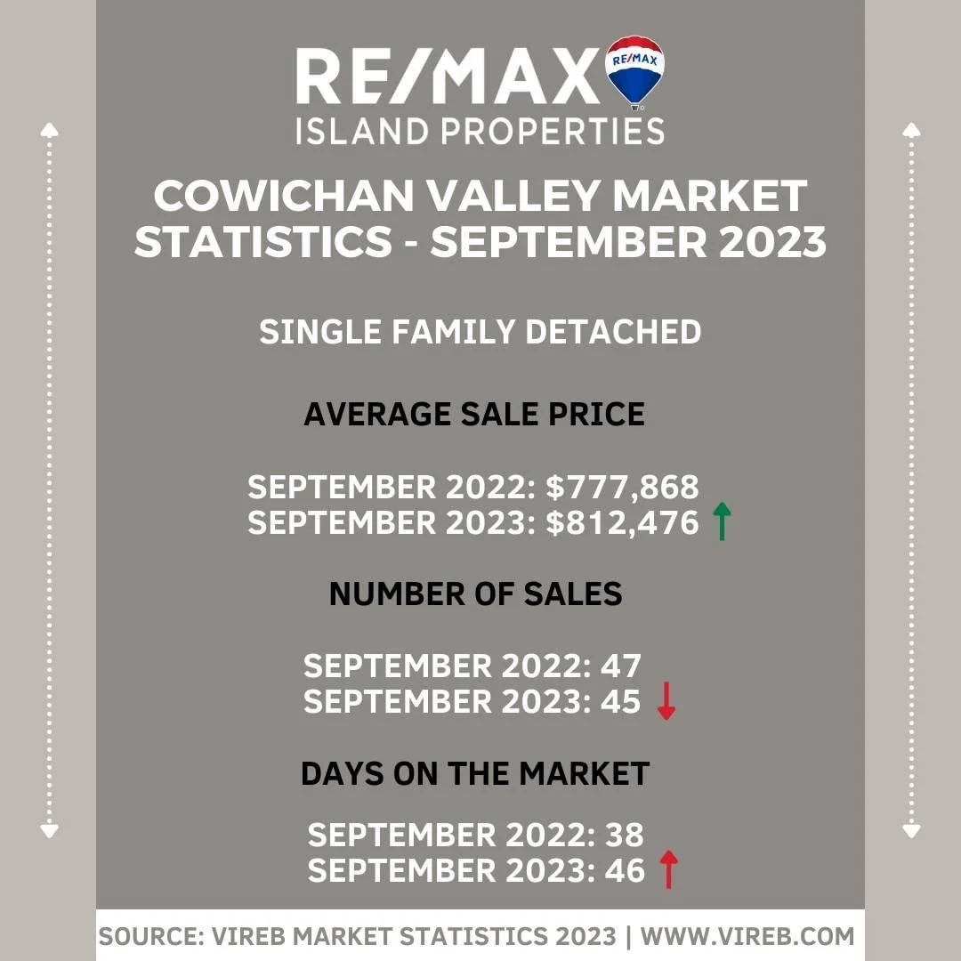 September looked like a relatively typical fall market but was somewhat slower than expected, so higher interest rates could be catching up with us. Potential buyers seem to be holding out for more favourable rates and conditions. The sellers’ market Vancouver Island experienced for the past few years has transitioned to a balanced market although it appears to be moving to one that favours buyers.