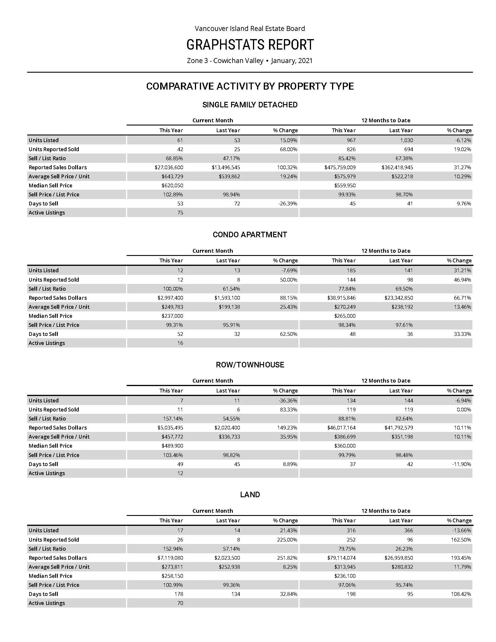 Cowichan Valley Market Stats for the month of January are in and it remains a strong Seller's Market.