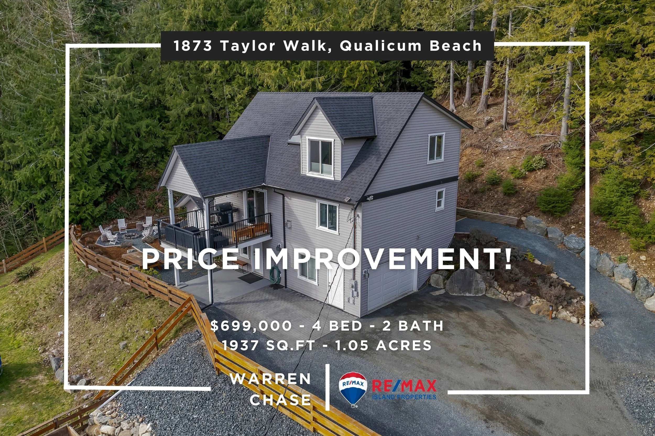 An outdoor enthusiast's dream! This stunning 4-bed, 2-bath, 1937 sq.ft custom home sits on just over 1 acre at the end of a quiet no-through road /w hiking & biking trails just steps away. A wonderful family-friendly neighbourhood /w a fenced lower yard that is perfect for kids & pets. On the main level youโll find a bright, open concept great room that opens to a covered south-facing balcony overlooking the beautiful mountain scenery โ perfect for entertaining & BBQโs. It also features a 4-piece bath & large bedroom /w double closets. Upstairs offers a luxurious primary bed /w ensuite, soaker tub, dormer window, & large double closets, and extra bedroom. Downstairs features a garage, workshop, & fitness room/bedroom. Other great features include a private fire pit, plenty of extra parking space, and a short hike/drive to Little Qualicum River for fishing, summer swimming, & fun. Upgrades include new heat pump, mud room, & landscaping/parking.